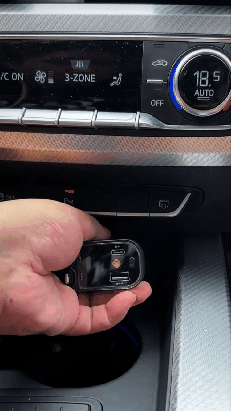 El enchufe puede girar 180° a izquierda y derecha, adaptándose a distintos espacios del auto