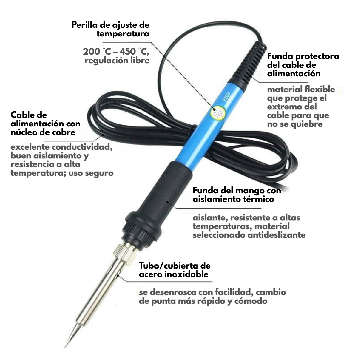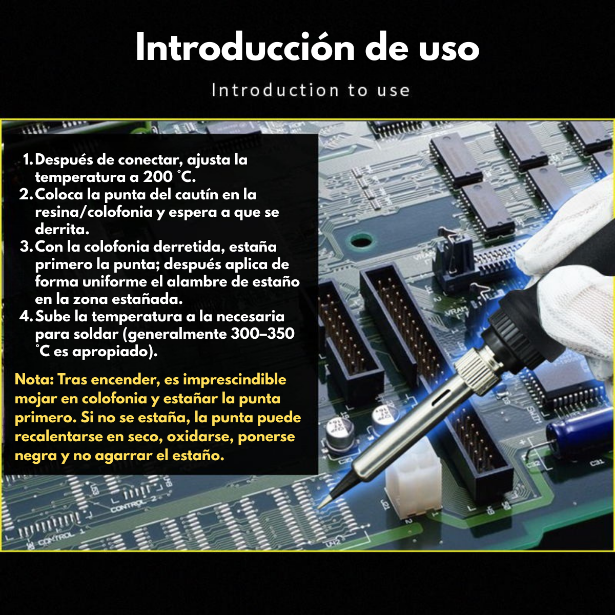 Soldadura Electrónica 💻🔌: Ideal para diversas tareas electrónicas, como reparación de circuitos, soldadura de componentes y mantenimiento de dispositivos. 🔧