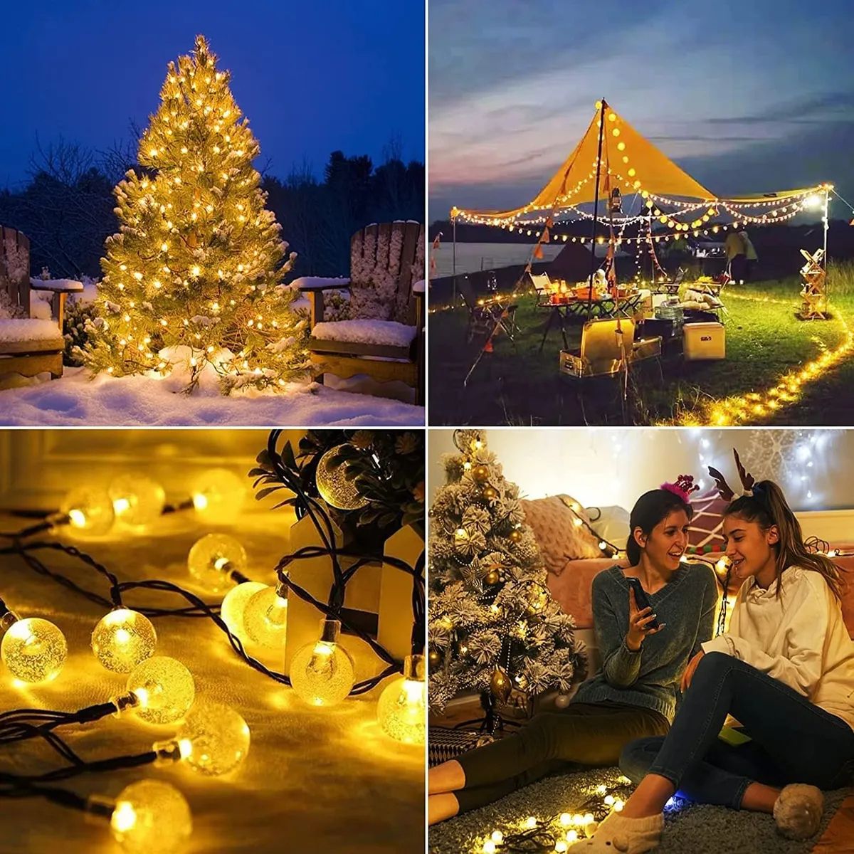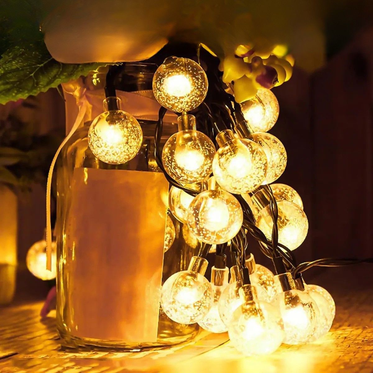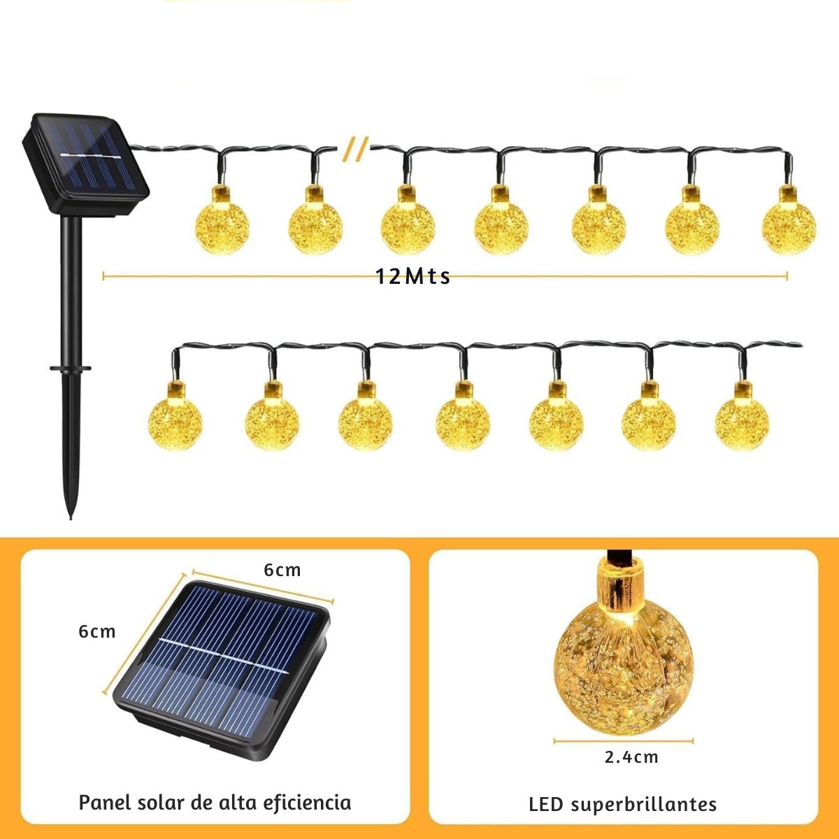Estas luces solares LED cuentan con un panel solar de mayor tamaño (2V 100MA) y una batería recargable de 600mAh, lo que proporciona hasta 14 horas de iluminación continua. Perfectas para jardines, terrazas, bodas, fiestas y más. 🌿🎉
