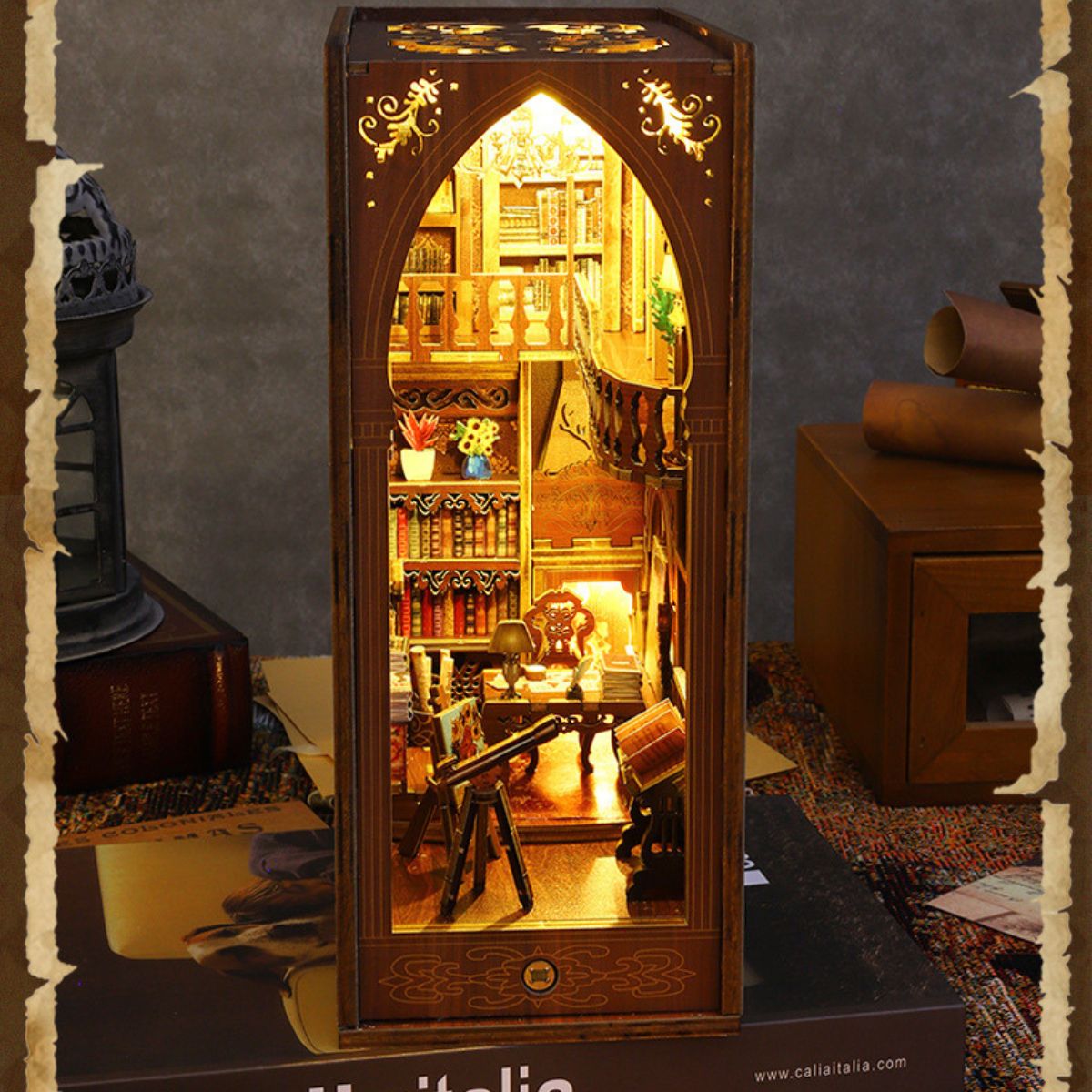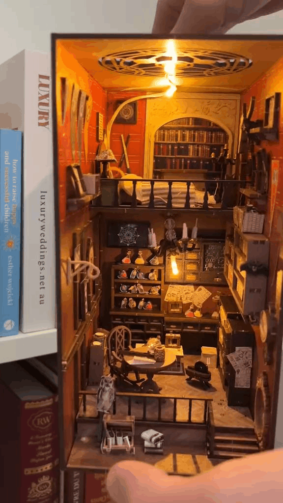 Una vez armado, este libro-rincón se convierte en una joyita para tu estantería o escritorio.