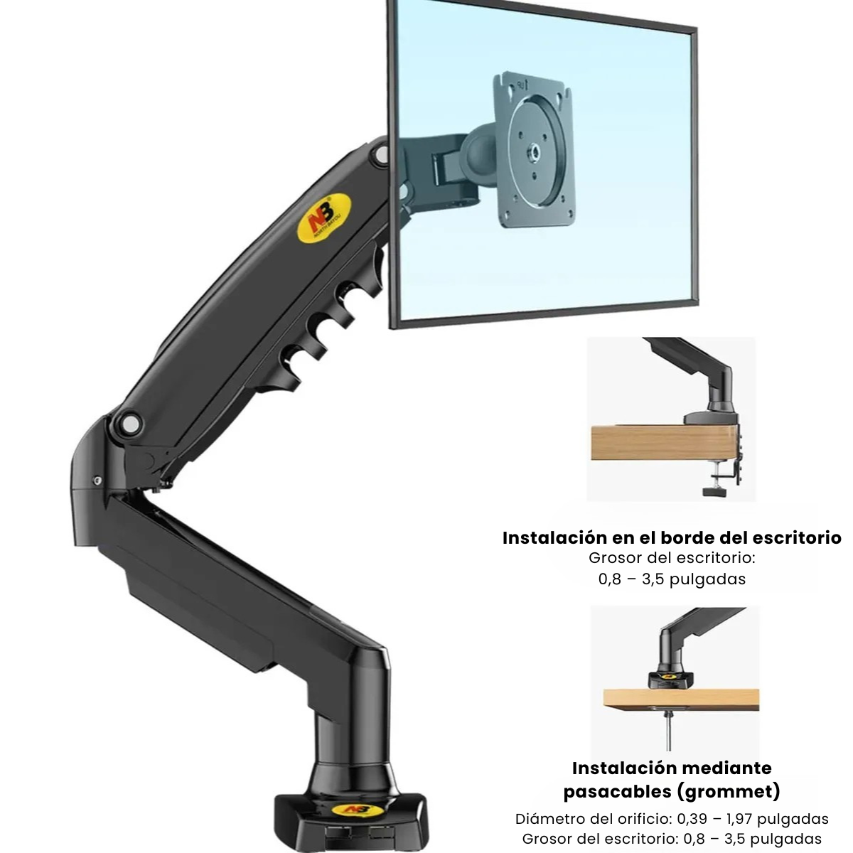 Fácil instalación: Compatible con métodos de montaje con abrazadera en C y ojal 🔩, lo que permite que una sola persona lo instale en menos de 10 minutos ⏱️. La gestión de cables integrada 🧰 mantiene tu escritorio ordenado y limpio 🧹.